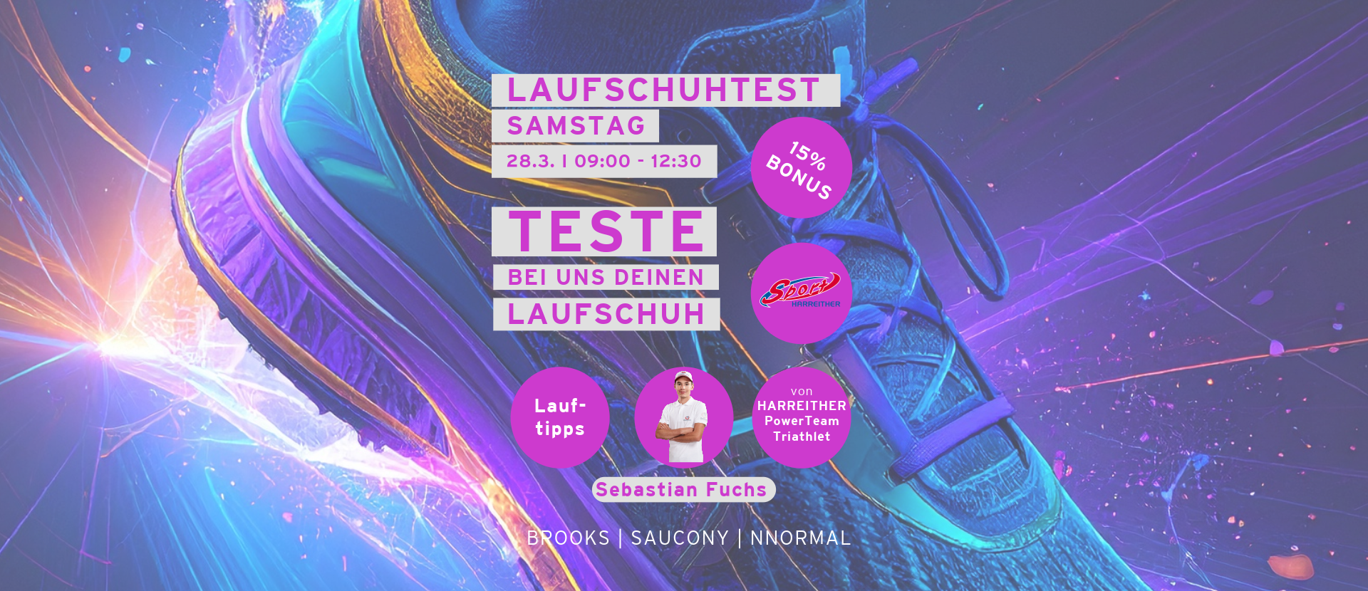 Probiere deinen idealen Laufschuh für die neue Saison, erhalte Lauftipps von Harreither PowerTeam Triathlet Sebastian Fuchs und starte durch.